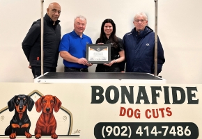 The Town of Amherst is pleased to welcome Bonafide Dog Cuts, a new dog grooming business now open in the community. Recently, Mayor Rob Small and Councillors Hal Davidson and Terry McManaman met with owner Chelsea Skinner to congratulate her on the opening of her new salon, and to present a new business certificate in recognition of her exciting new venture.